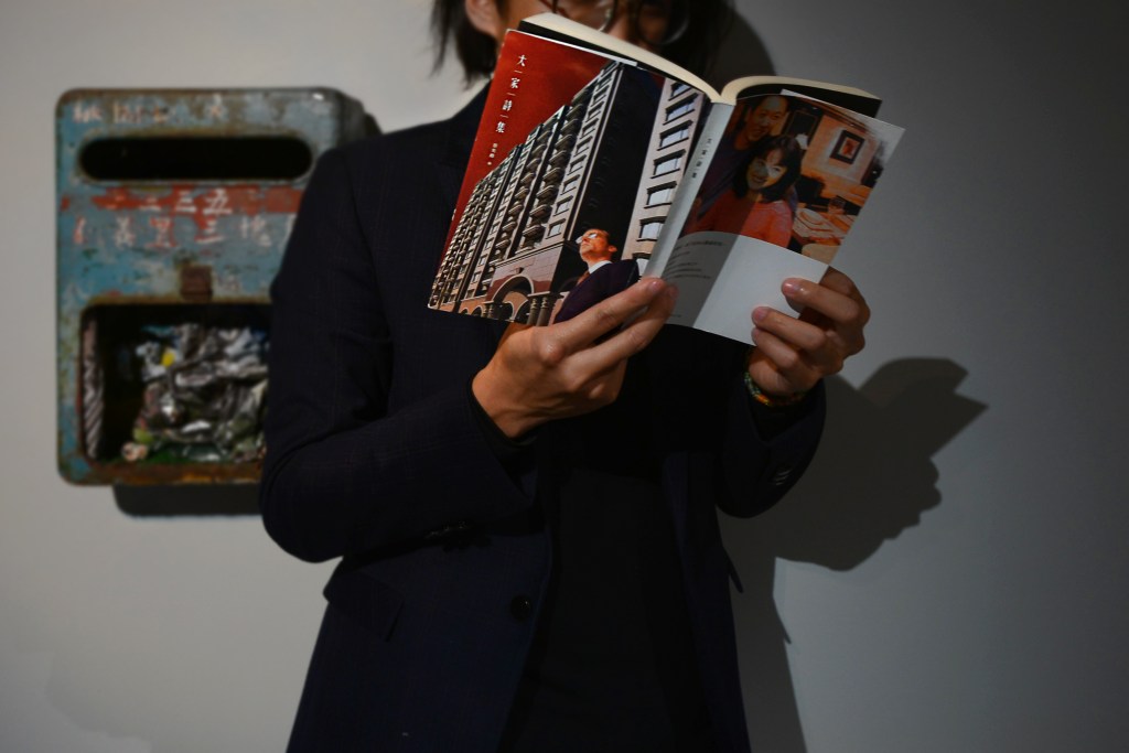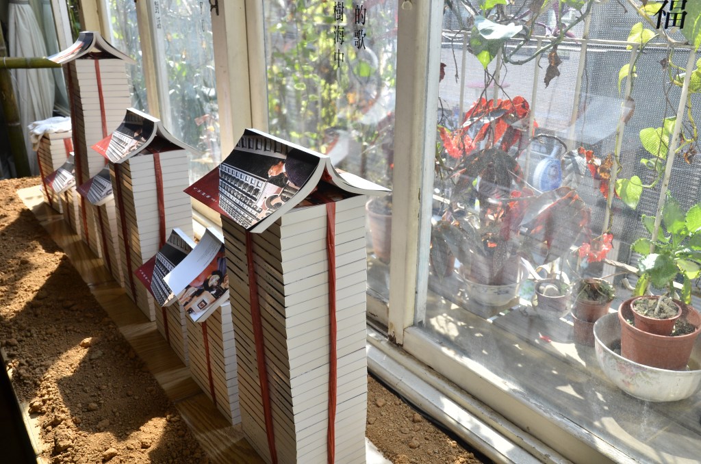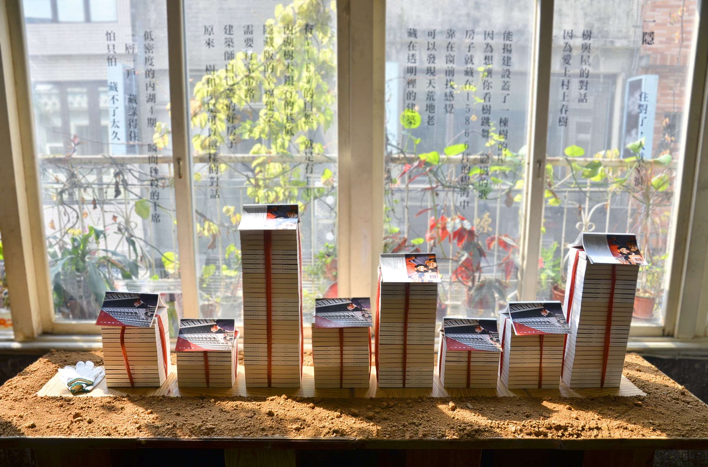 蒐集成冊的詩集,將書本層層疊疊為高樓,再以繩索十字綑綁後,將一本詩集翻開倒蓋於高處,成為屋頂之意象。於空間中撲滿土壤,大樓屹立於中央,在展呈中戴上施工手套便能提供翻閱及拿取,直到書籍拿完後,整個互動過程方為作品完成。