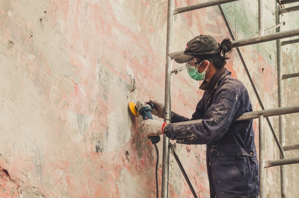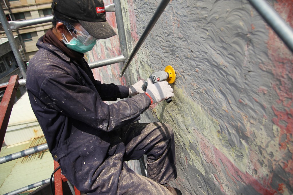 透過藝術家之行為,以消除替代消逝,用最小工程、最小單位、最小動能的方式,磨除廣告而還原高牆建築本身,鏡射出城市的地域狀態。模擬昔日油漆師傅,爬上城市高處近距離的觀看廣告牆與觀看廣告所宣傳出去的城市視野。以三個角度拍攝,記錄自身、高牆與街區環境的關係,城市景觀在打磨的過程中逐漸改變,以最小的行為規模回應這座變遷中的城市。