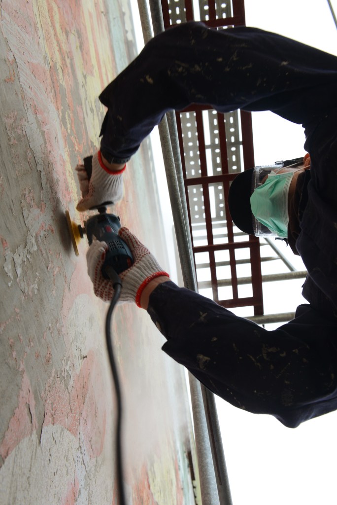 Eliminating but not vanishing. Through the way of the minimum of construction, the minimum of unit, and the minimum of energy to wipe out the advertising and maintain the building of the “high wall,” one can declare the regional condition of the city. Imitating the past painter, we climb to the top of the building to inspect the advertising wall and look down the view like this advertising wall looking at the city. Taking the photo from the view of the recording itself, high wall, and streets, the image of this city gradually changes with the polishing process. This is how we respond to the changes in the city with as little movement as possible.