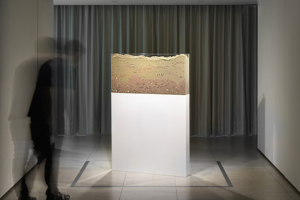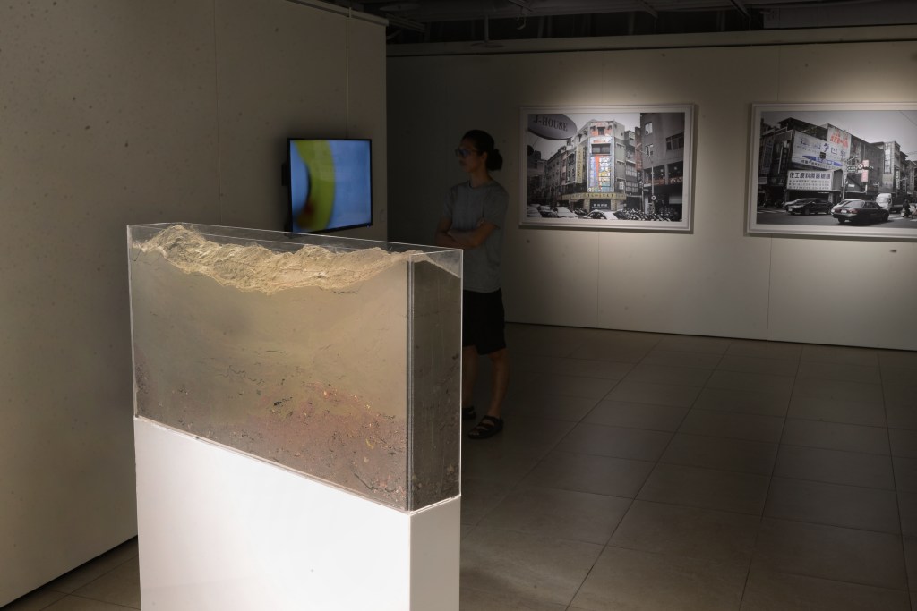 將褪去的粉塵與水泥重新推砌為時間性的橫向剖面,回應台灣經濟起飛階段,鋼筋水泥帶動城市發展的新境界。
