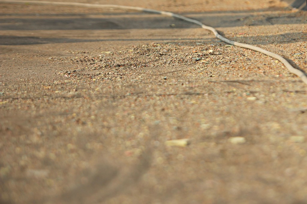 打磨機不停的高速旋轉帶著身體往前移動,噴發的粉塵佈滿全身及空氣中,眼前事物彷彿變緩慢了,時間變得很長很長,耐性越來越薄弱,眼罩早已模糊視線,但雙手胳臂卻已經與打磨機合為一體,進入城市內部了。
